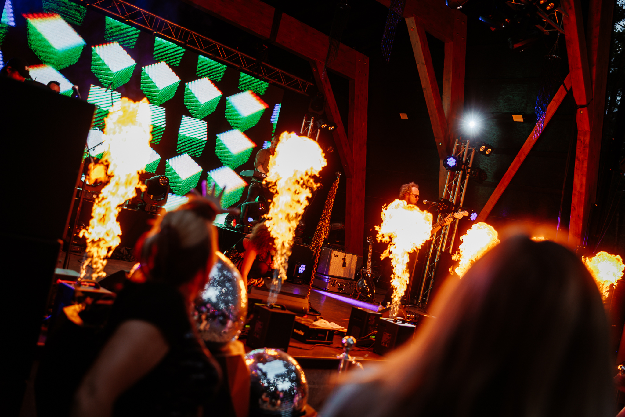 Suur lava, tantsuplats, toetavad telgid ja lipuvarras.